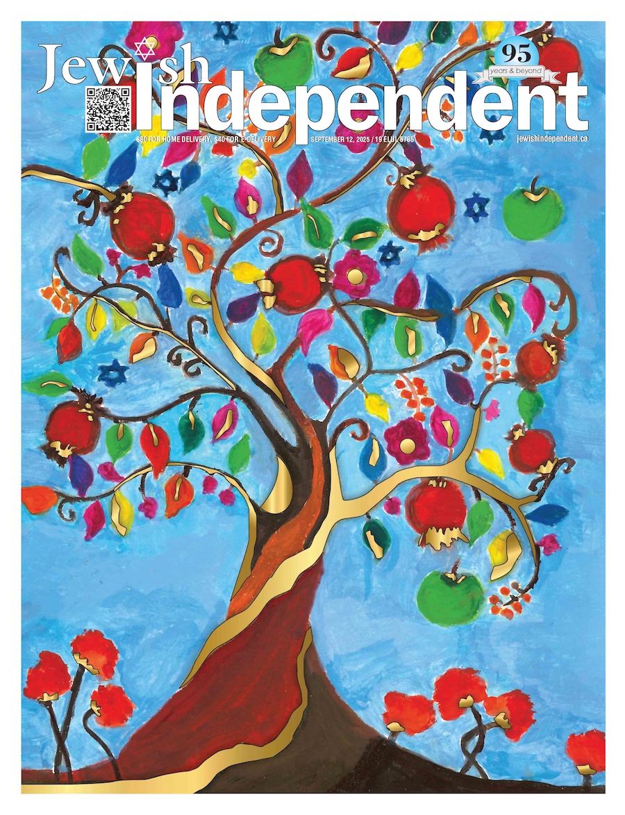This year’s Rosh Hashanah cover art was created by Elaine Arenson in 2024 for Chai Cancer Care, the British Jewish community’s national cancer support organization. “This is my tree of Chai, my tree of light,” she wrote about the image. “Through the art group, we find creativity, renewal, community and exceptional care. We discover we are so much more than a cancer diagnosis.”