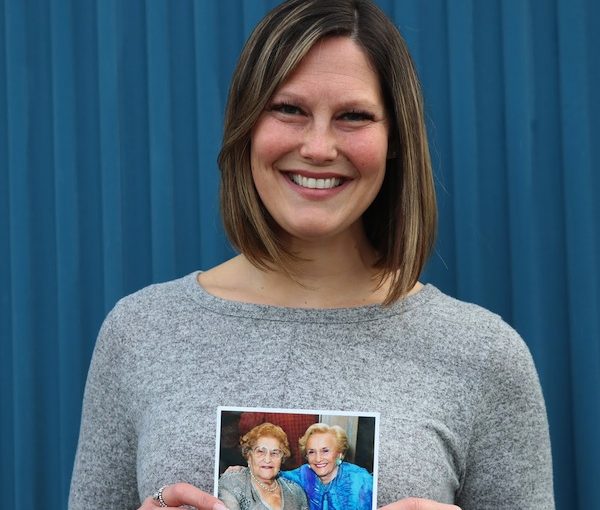 Courtney Cohen holds a photo of her grandmothers, Rose Lewin, left, and Babs Cohen. (photo by Lianne Cohen Photography)